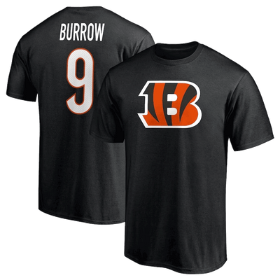 Camiseta negra con el icono del jugador de los Cincinnati Bengals, Joe Burrow