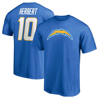 Camiseta con nombre y número de Justin Herbert, jugador de Los Angeles Chargers - Azul claro