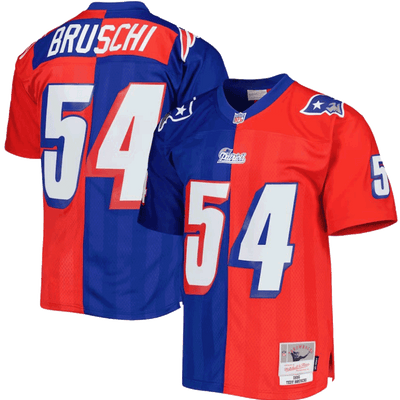 Camiseta Mitchell & Ness Royal/Red 1996 Split Legacy de los New England Patriots de Tedy Bruschi
